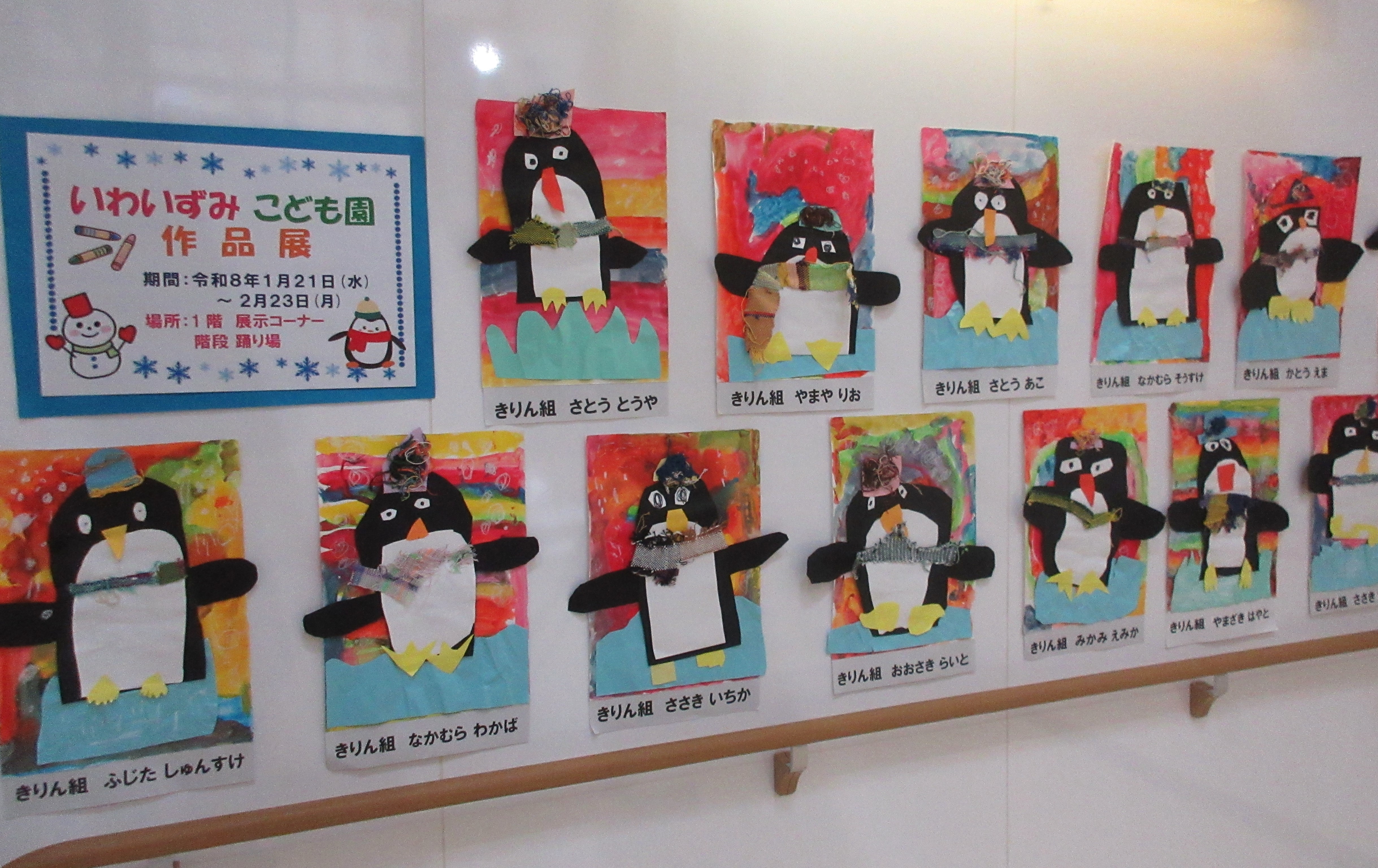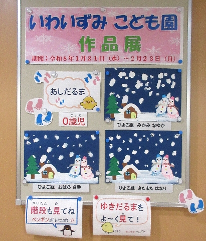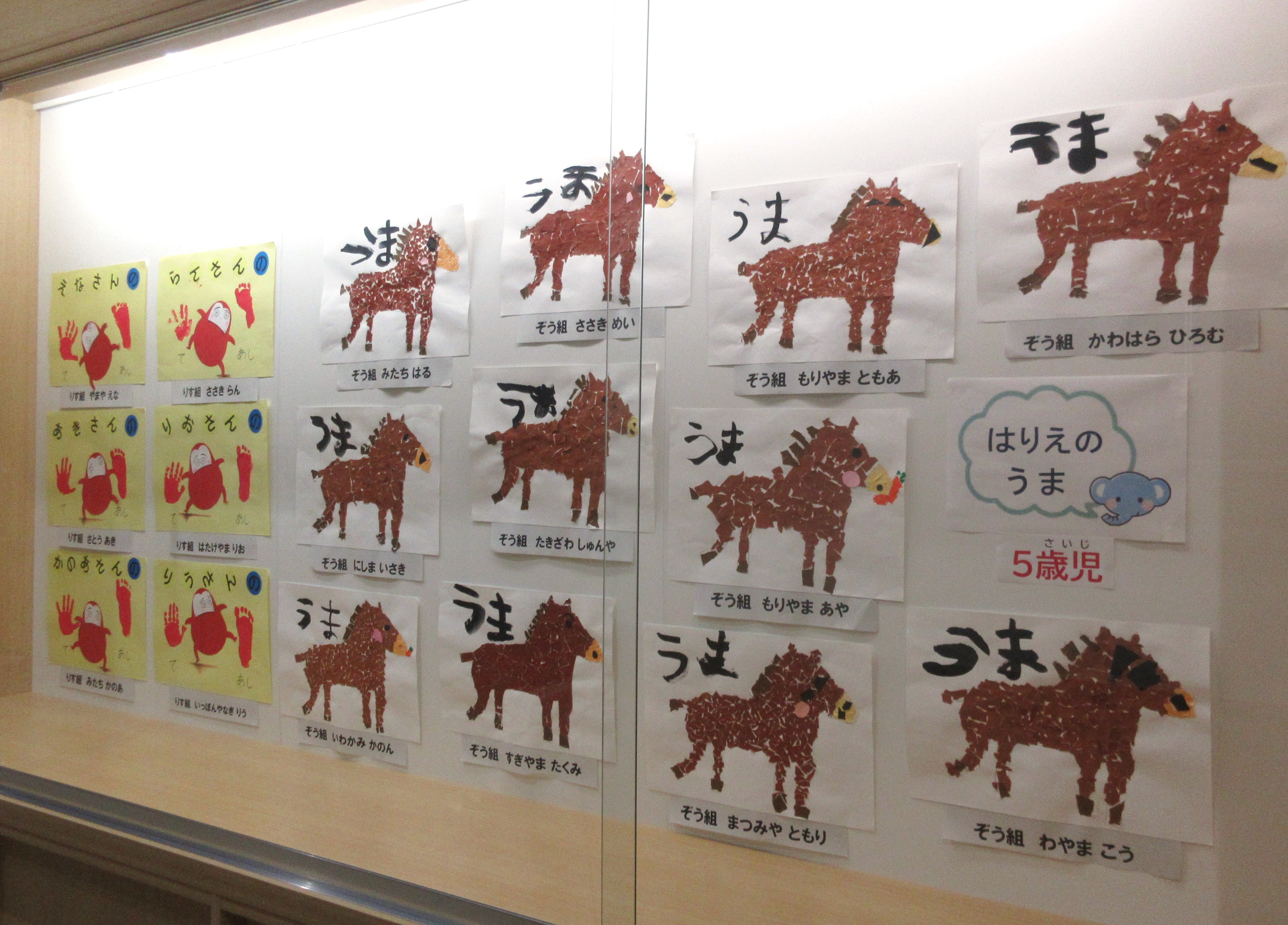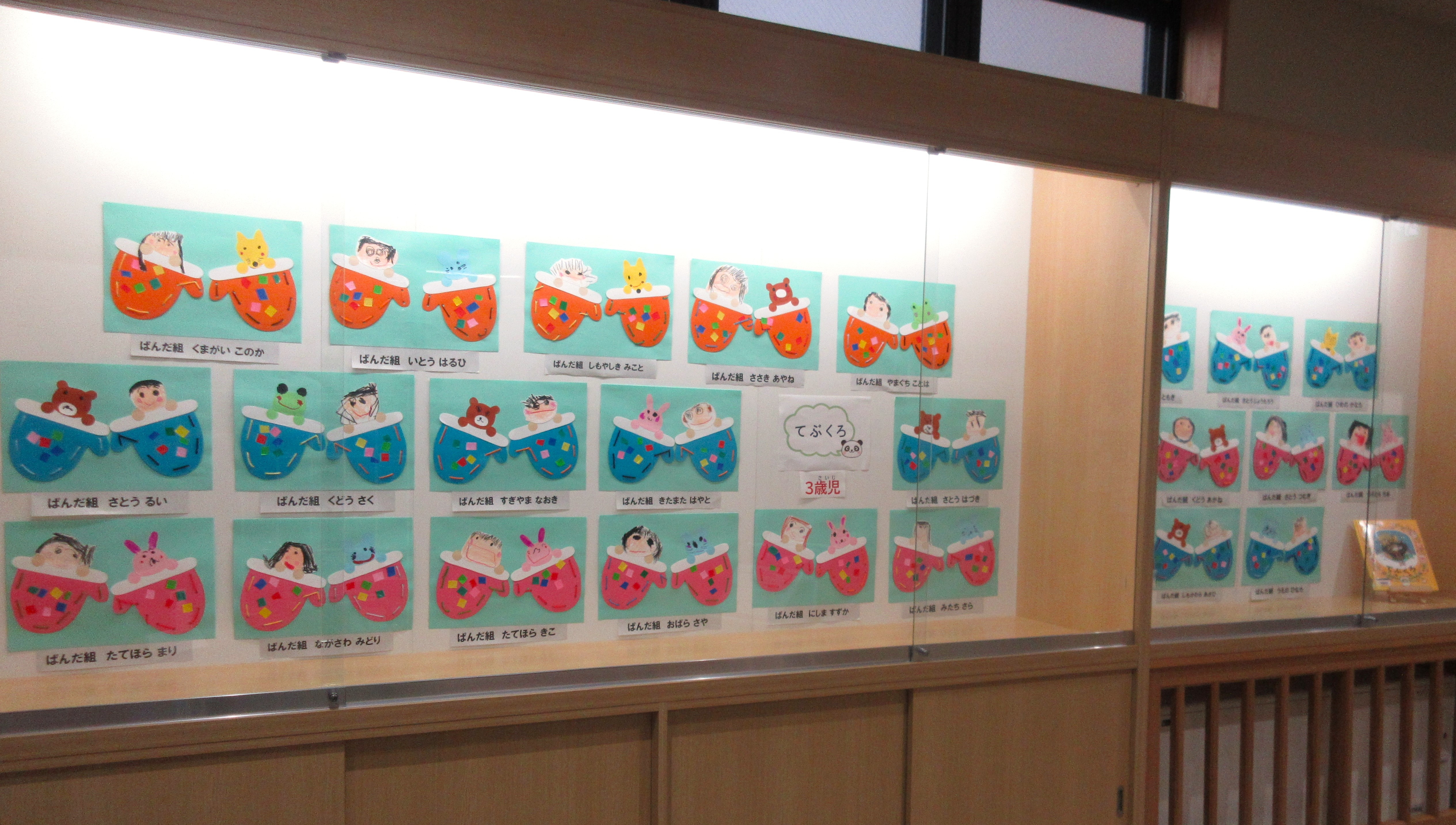 0歳児~5歳児クラスまでの子どもたちの可愛らしい作品に、思わず笑みがこぼれます。