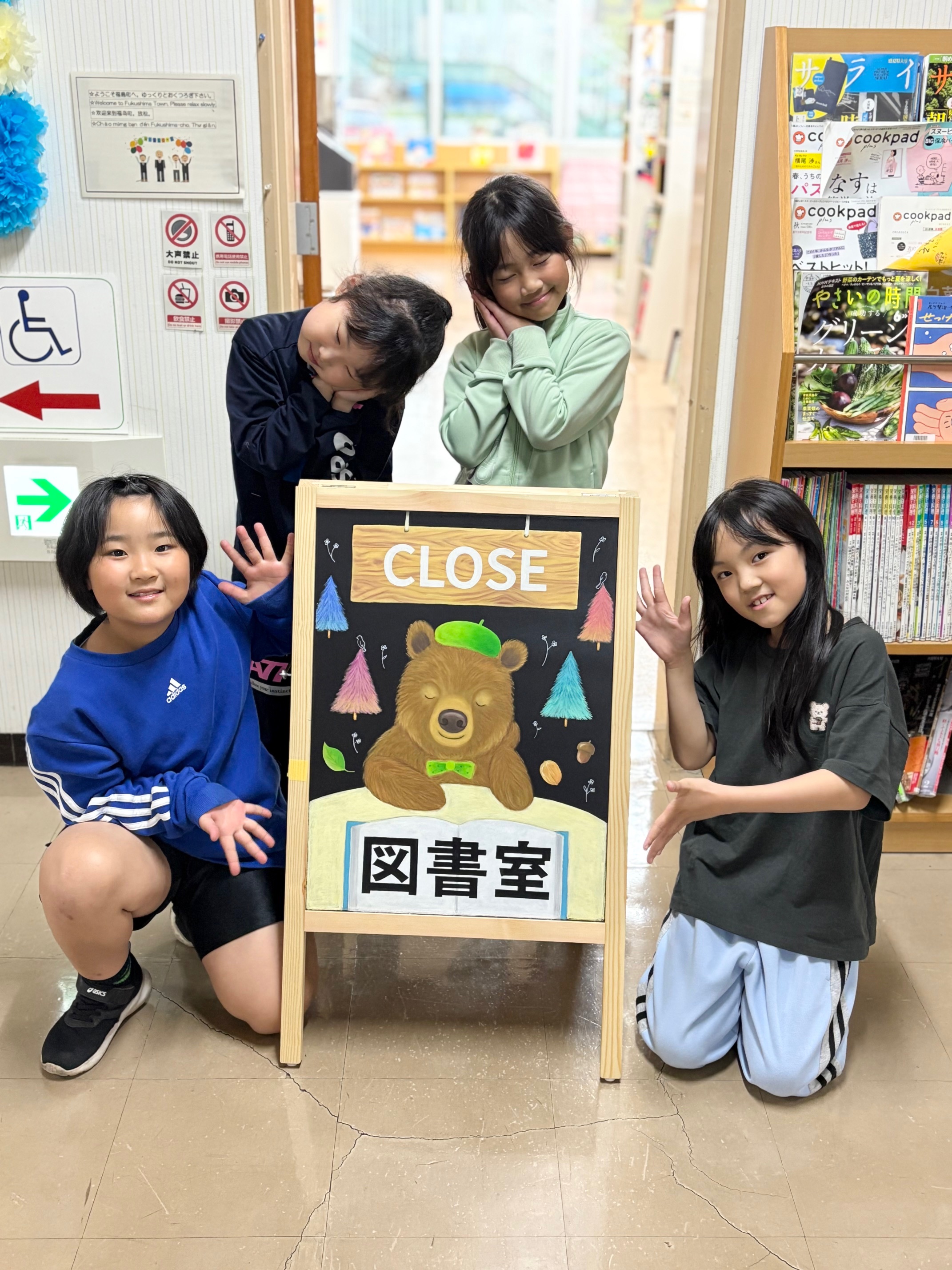 このたび、図書室入口に新たにチョークアート看板が設置されました。