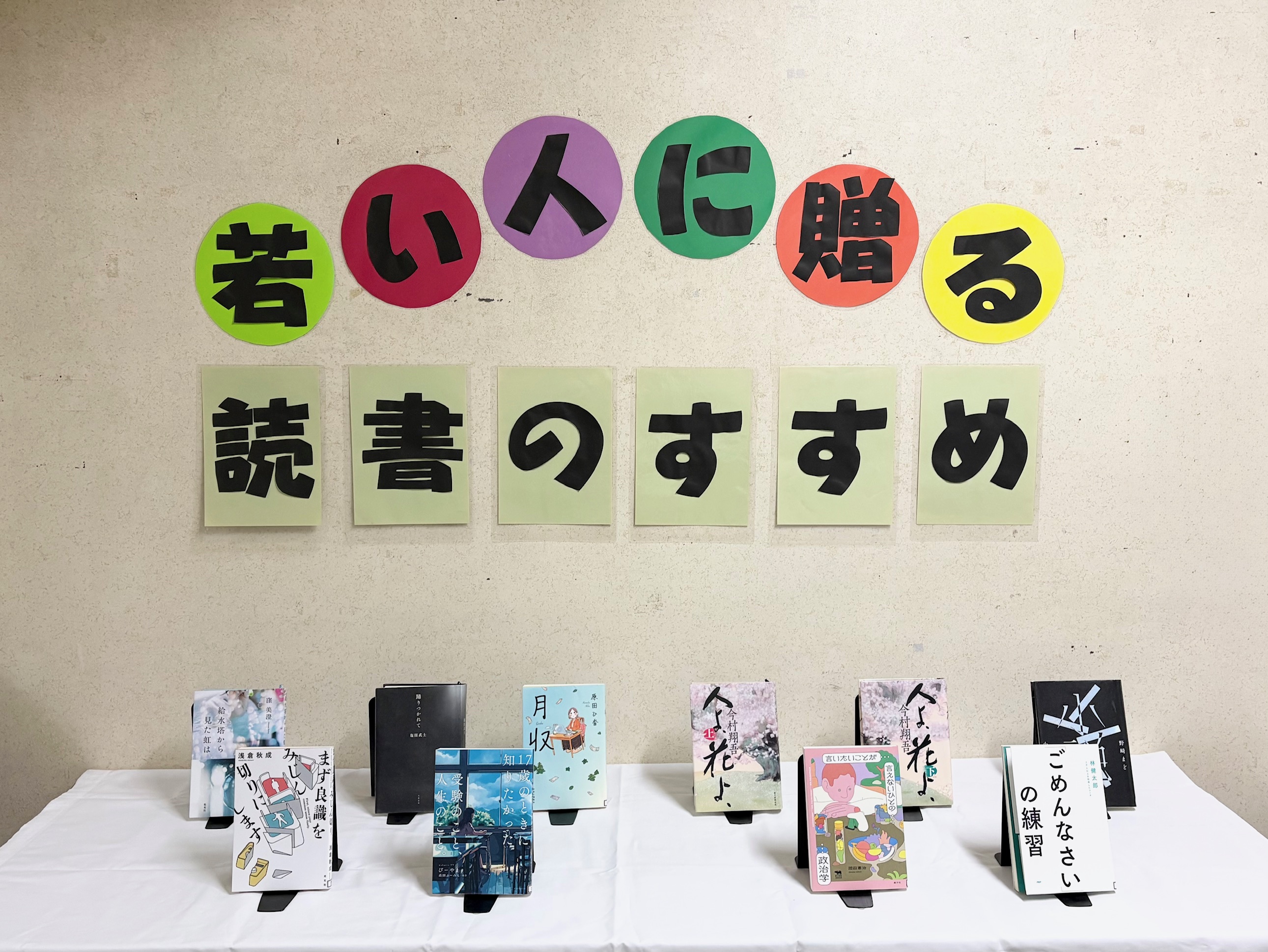 読書推進運動協議会がおすすめ本を紹介する「若い人に贈る読書のすすめ」。成人式・卒業式など新たな人生の一歩を踏み出す若い人に読んでもらいたい本を展示しています。ぜひ、気になった本を手にとってみてください!