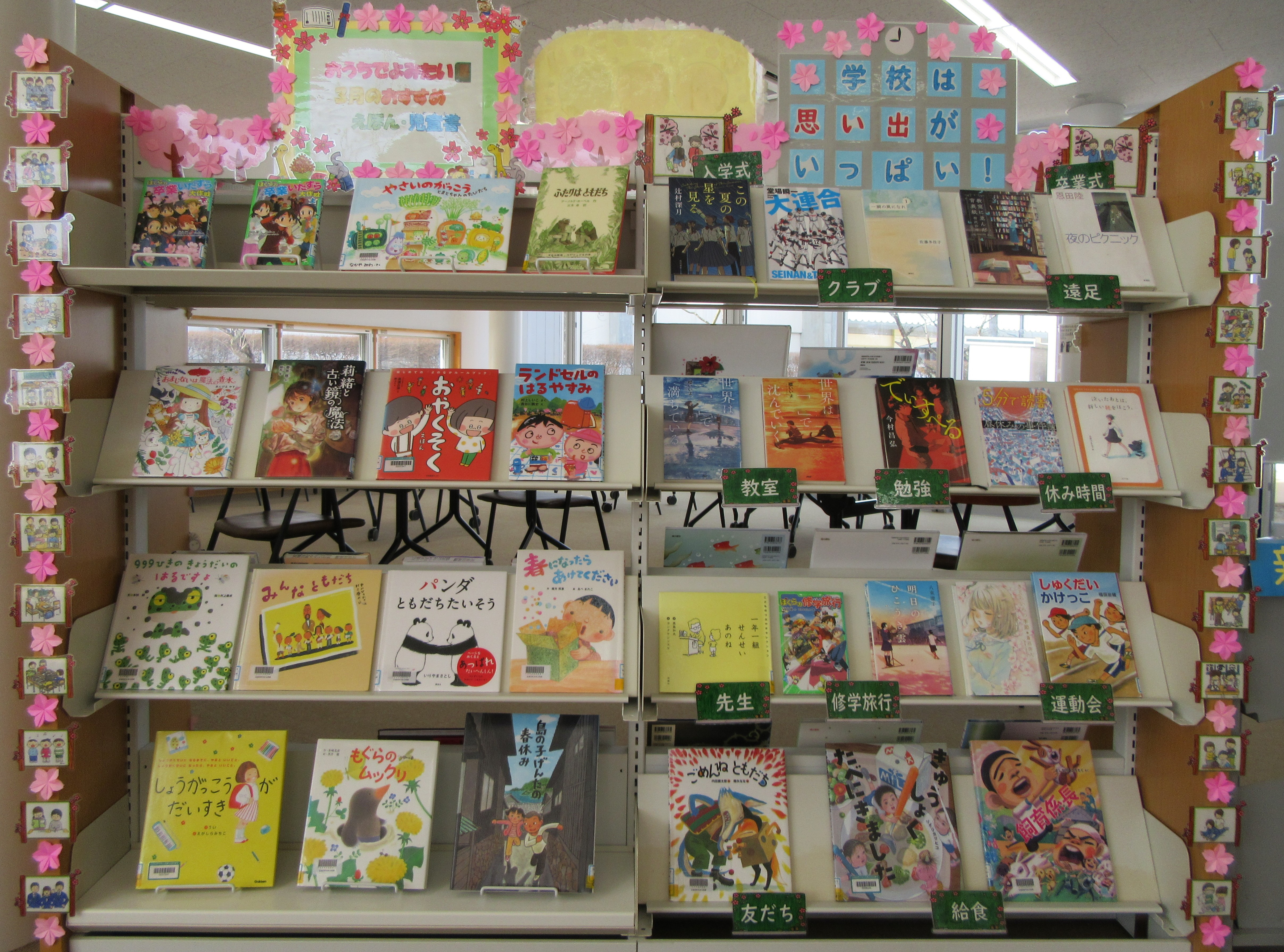 3月のおすすめの絵本と児童書も展示しましたので、ご覧ください。