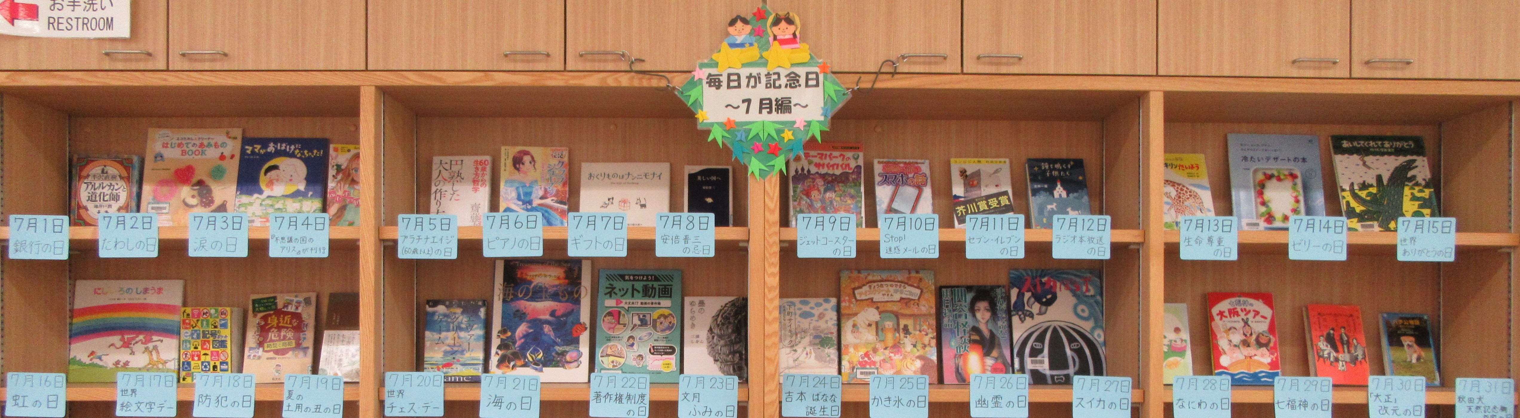 幼児絵本のコーナーや、毎日が記念日の展示も変更しましたので、ご確認ください。