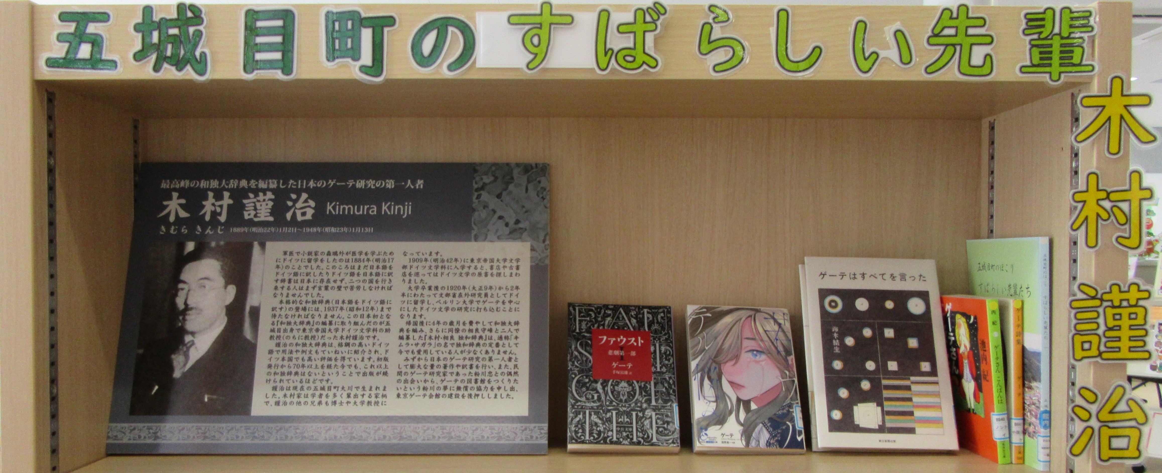 謹治さんが研究に打ち込んだ、ゲーテに関する本を集めた特別コーナーを設置いたしましたので、ぜひご覧ください。