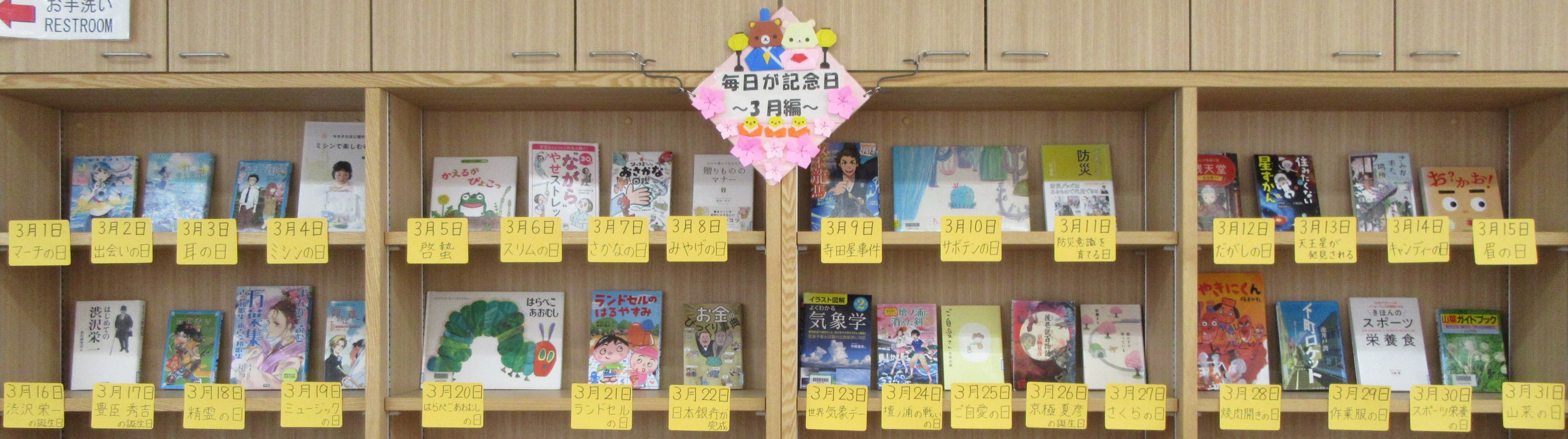 また、3月の毎日が記念日とようじえほんの展示も変更しましたので、ぜひご覧ください。