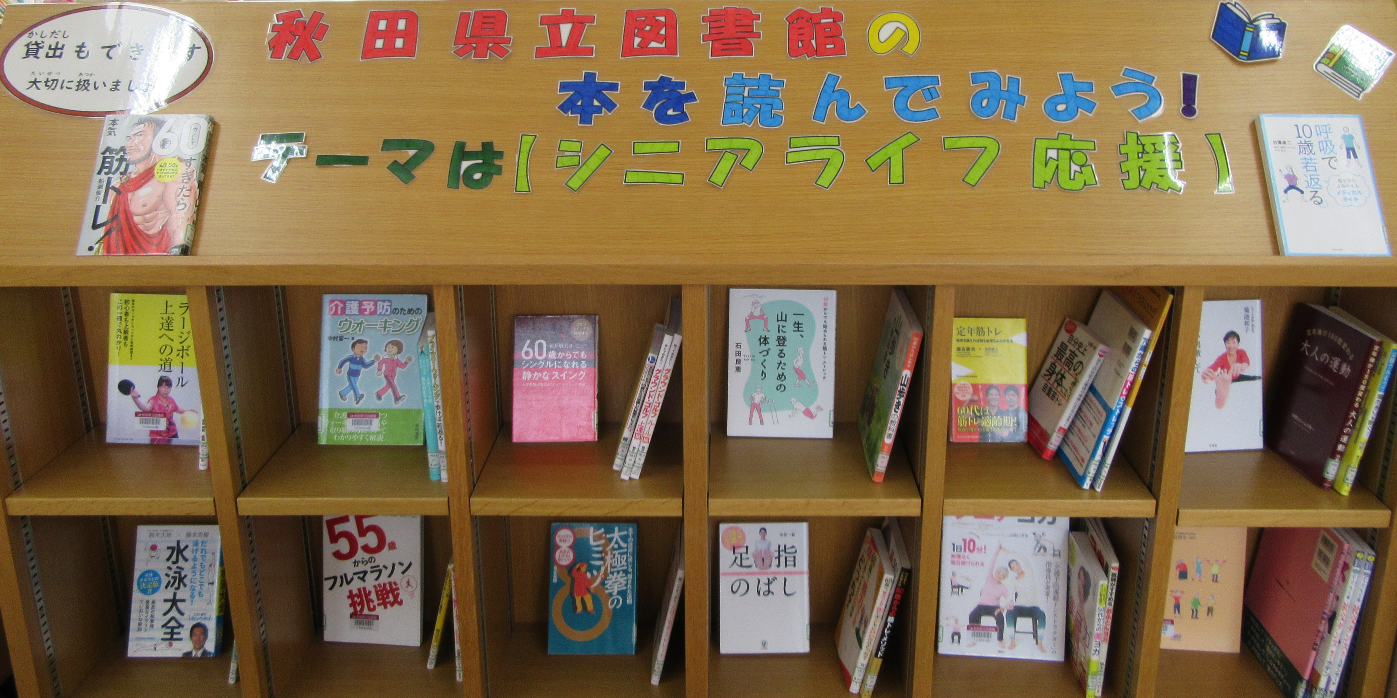 秋田県立図書館から、【 シニアライフ応援 】をテーマにした図書をたくさんお借りしました。