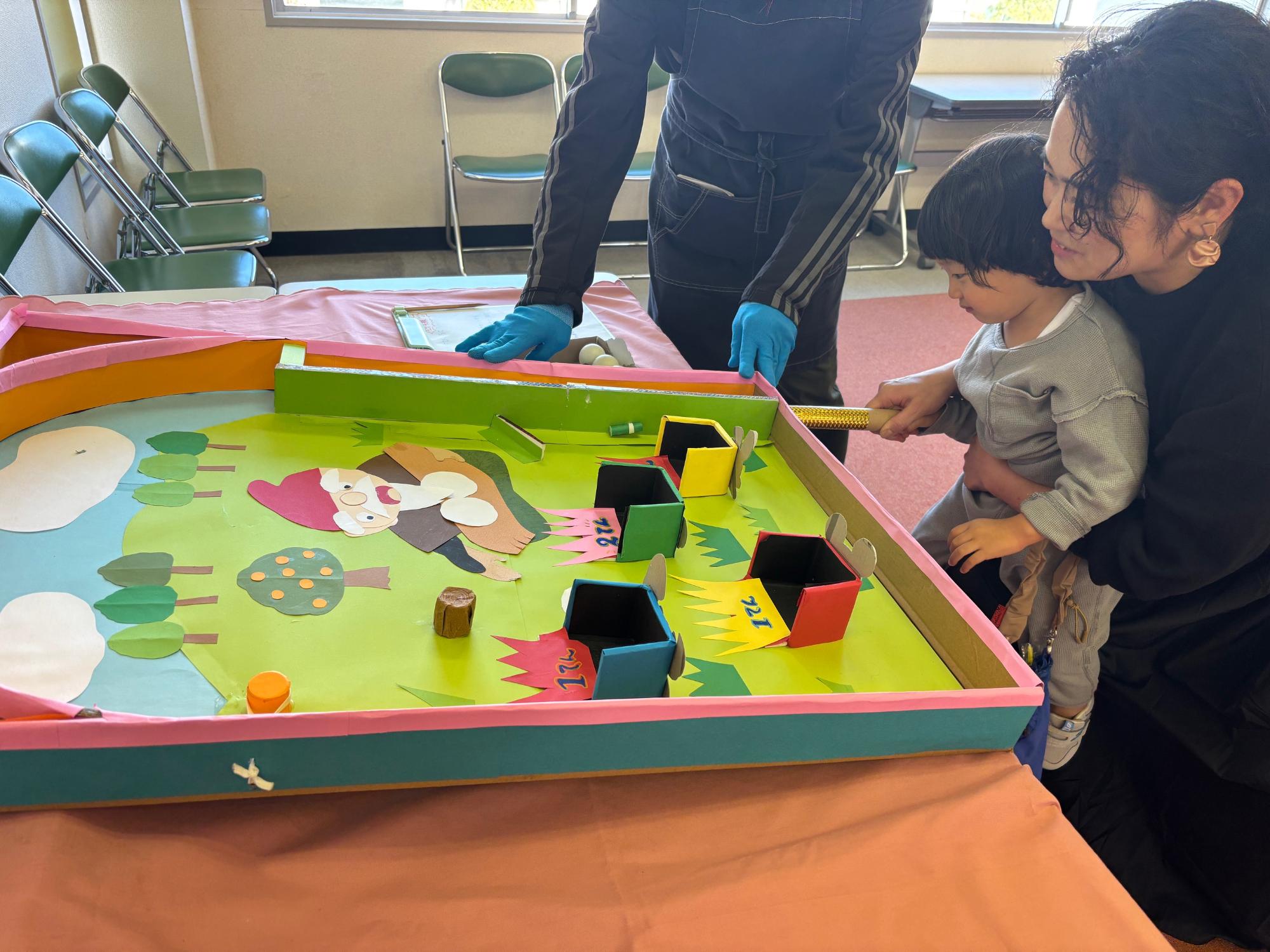 おたのしみコーナーでは、「おむすびころころ」「ねらってポン!」「ももたろうのオニたいじ」などのゲームに子どもから大人までがチャレンジし、会場内は大いに盛り上がりました。また、淨るりシアターホールでは人形劇団「ぽんた」「ちちんぷいぷい」による人形劇が上演され、多くの家族連れでにぎわいました。
