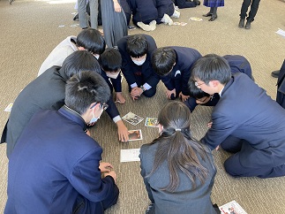 かるたの残り札が少なくなるにつれ、人の輪が小さくなって頭突きしそう(笑)…