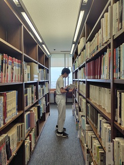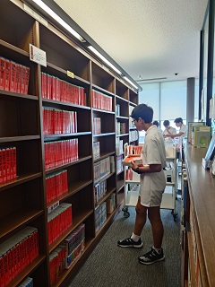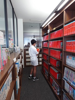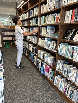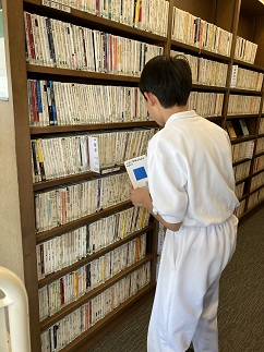 こちらは返本数冊手に持って書棚を眺めて…ハイ!正しい位置に入れる