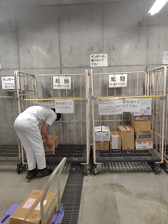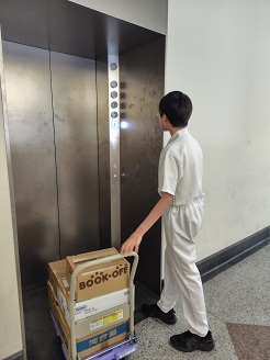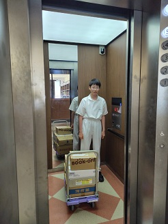 こちらは廃棄の書類や本の運搬司書はエレベーターまでお見送り(笑)、いってらっしゃい!ありがとう