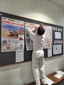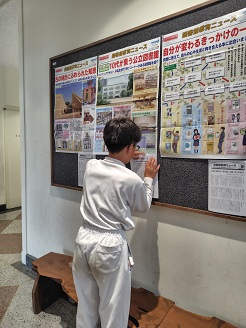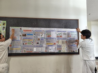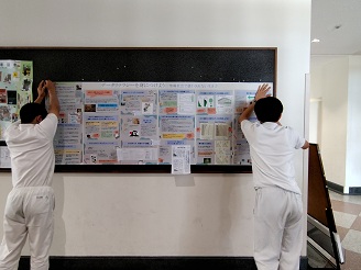 こちら、廊下のふたり 掲示物の貼り替えですが…さすが高校生二人だと背も高いしめっちゃきれーに貼ってある