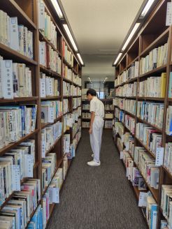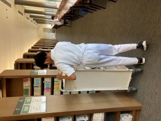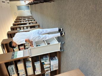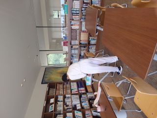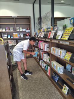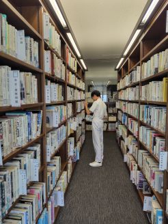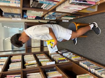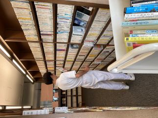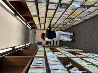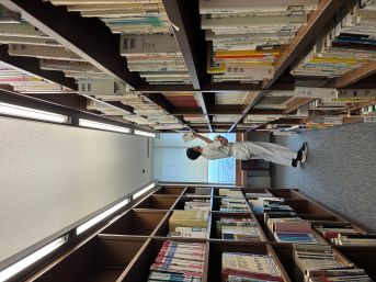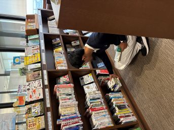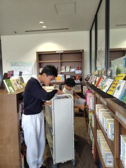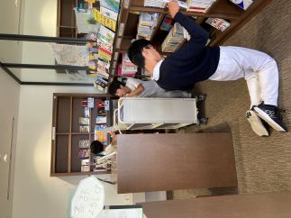 こちらはですね、本を棚にもどすんじゃなくて、新刊を並べているところ
