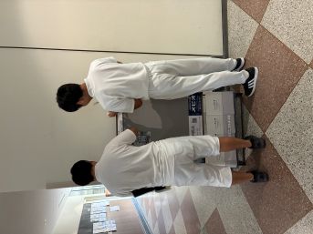 廊下の掲示物の貼り替えもサクっとね(本日2つ目の仕事してる委員もいるね)