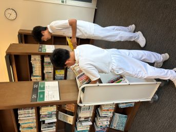 本日の班長…後期は中学生が班長ですが、図書委員としてはもうベテランなのでね