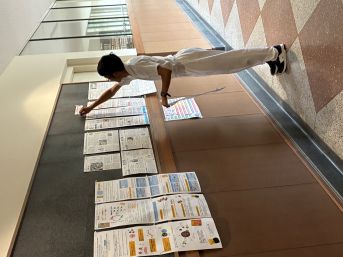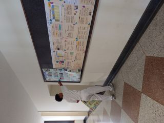廊下の掲示物を張替え中 新しいあれこれ雑学は何でしょうーーー