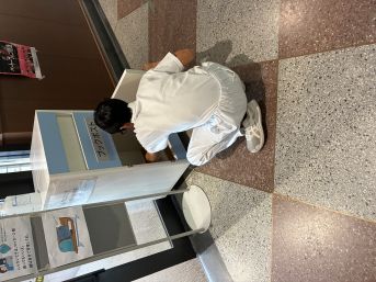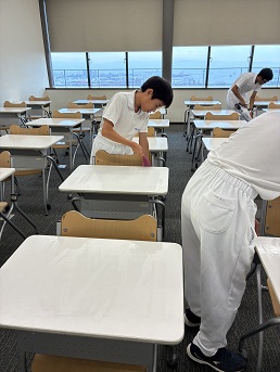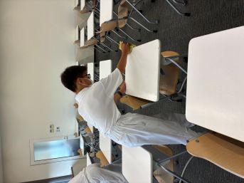 見学のみなさんが通る多目的室を、綺麗に掃除しまっす