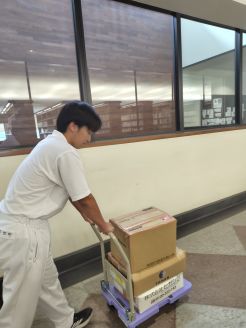 連日ですが、除籍本や紙ごみを校舎裏の倉庫へ運搬