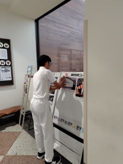 そのころ廊下では…ポスターや写真ニュースの貼り替え中