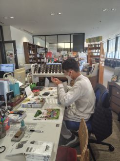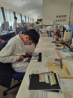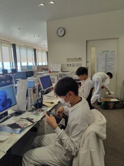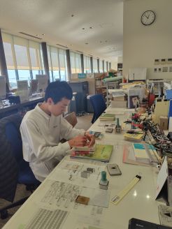 こちらはチョキチョキ✂と新刊案内のパーツを切る高2のおふたりすっかりお兄さんな雰囲気ね