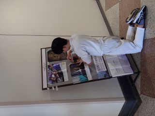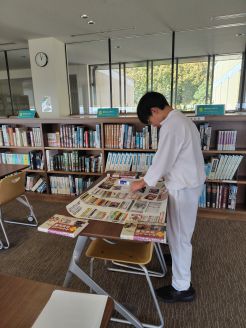 廊下の展示貼り替え、報道ニュースも貼り替え どんどん新しい情報に変えていきましょ
