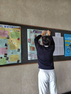 廊下では、各種ポスターの貼り替え中