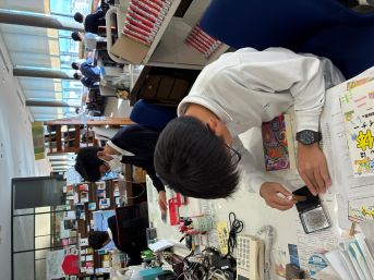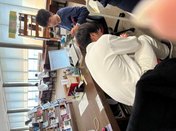 手前の生徒さん、委員じゃないけど友達のお手伝いで子ラベルの記入 アリ(´・ω・)(´_ _)ガトー♪