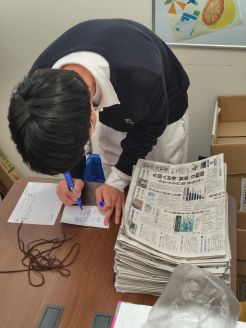 黙々と新聞を畳んで収納してくれた委員、ありがとね(,,>᎑<,,)イツモアリガトデス