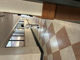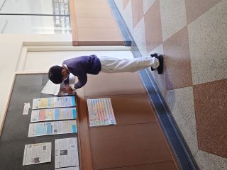 1階の東・西広場の掲示貼り替え中
