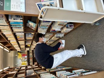 (高3が大勢フロアの机で勉強してるので、図書委員活動はこっちでね)