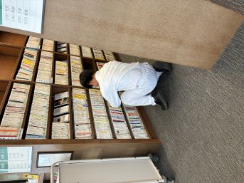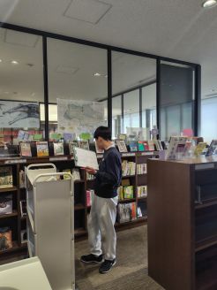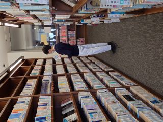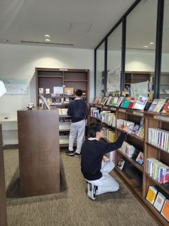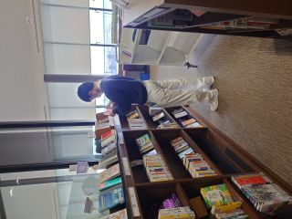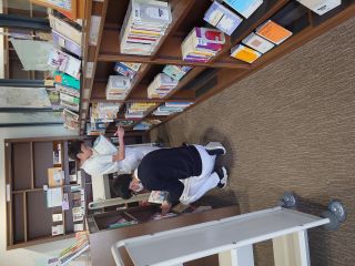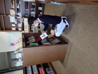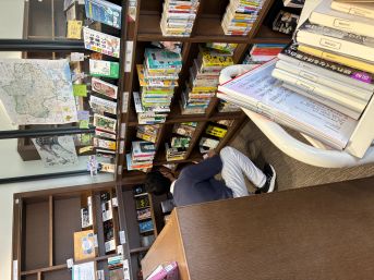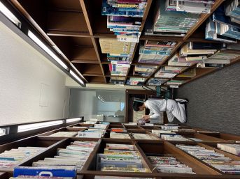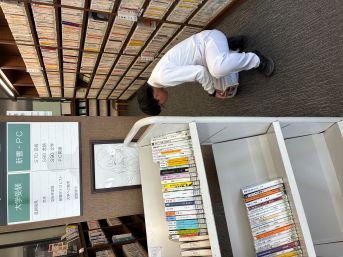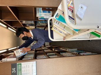 これは「新刊コーナーに置くにはもう時間がたった本」を抜いているところ