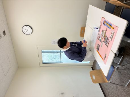 ここはグループ学習室(フロアには高3生が沢山いるのでここで作業)