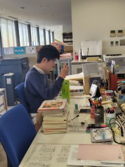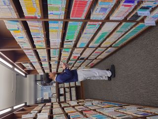 こちらは個室での作業、新刊案内のポスターを糊で貼って作成中φ(..)ハリハリ