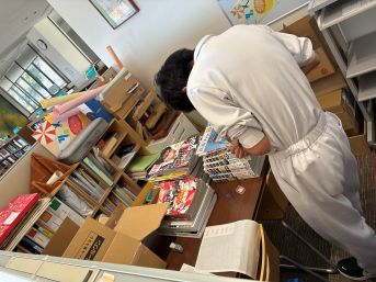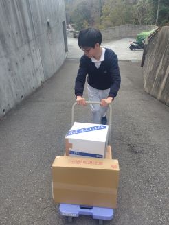 校舎裏の倉庫まで除籍本や紙類を運搬してくれた委員