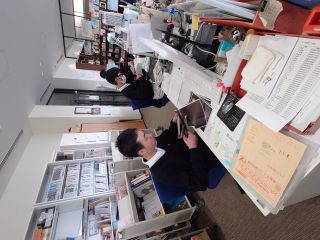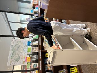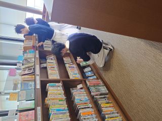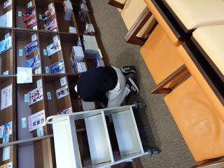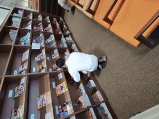 本を並べている人・・・どれを目立つところに並べようか・・・結構考えるもんです(;・∀・)ウーーン