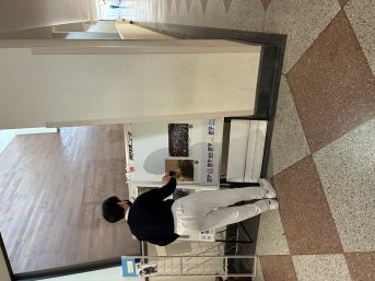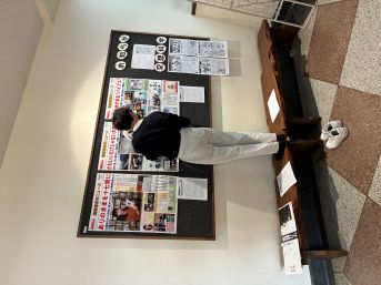 ここも寒い!廊下でポスターやニュースの貼り替えをする委員(/・ω・)/ハリハリ