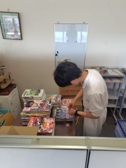 古くなった雑誌を選別して抜いている委員