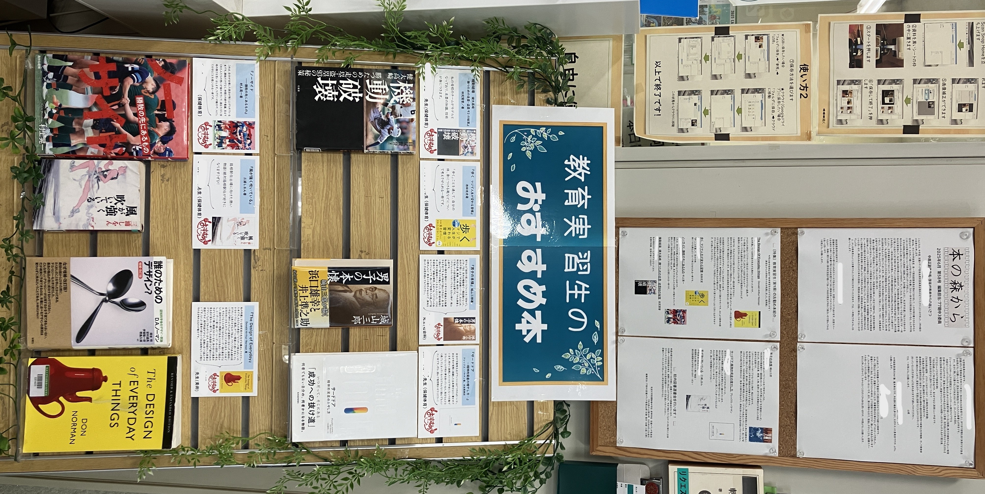 図書館の司書室前にコーナーを設けて展示中です。